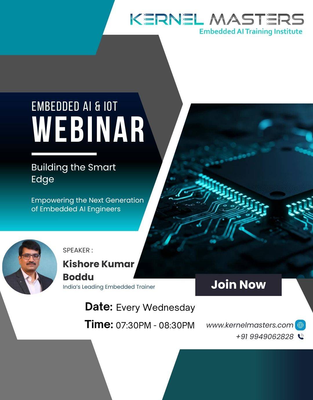 Embedded AI & IoT Webinar | Freshers / Working Professionals | 1 Hour | Every Wednesday (From 12th Nov Onwards) ( 7:30 PM IST) | Online | - |