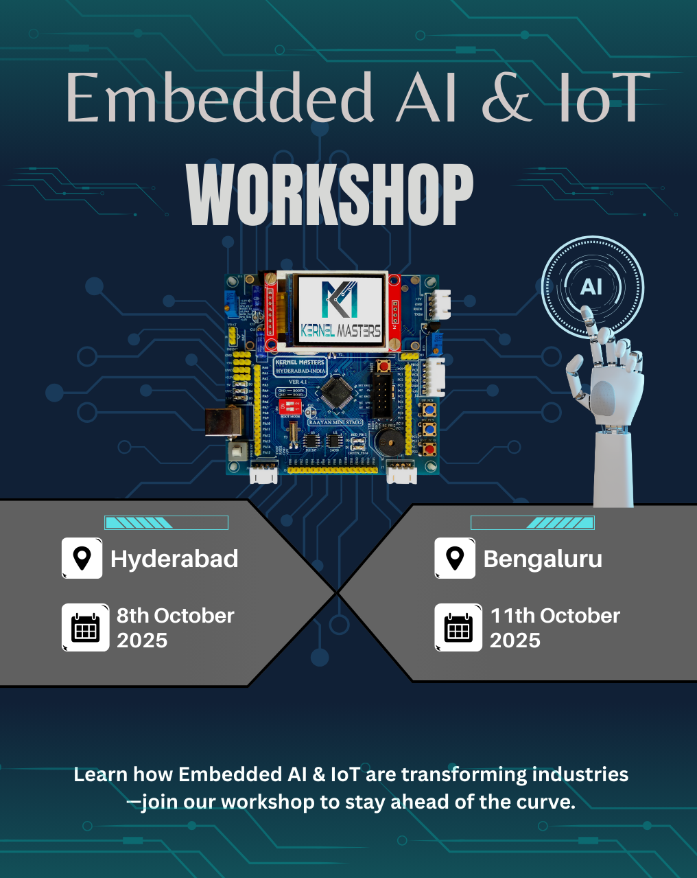 Embedded AI & IoT Workshop [Hyderabad] | Freshers / Working Professionals | 3 Days | 8 OCT 2025 ( 9 AM - 1 PM ) | Offline | ||