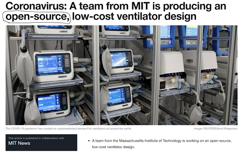There is also requirement for time & cost effective solutions in development countries like India. Which brings in greater opportunities for Open Source Technologies. For example, there is a sudden demand for ventilators due to Corona virus disease spread, but there is not enough supply. As a quick solution, Open Source Ventilator development is one of the ongoing projects.